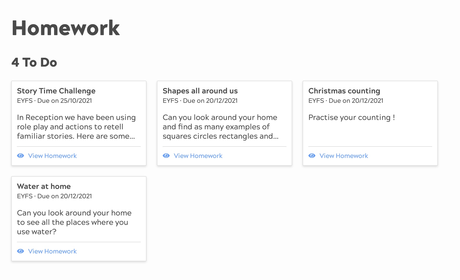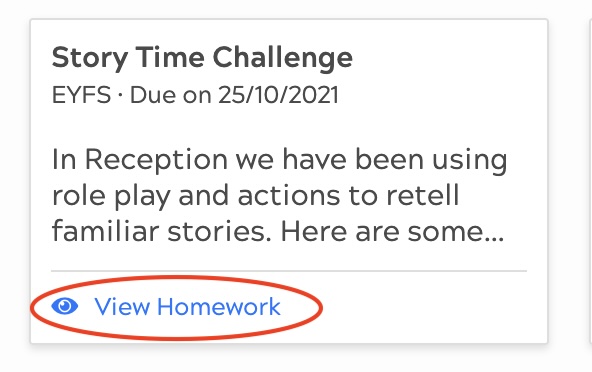 Click ‘View Homework’, this will open up the Homework screen for children to complete.