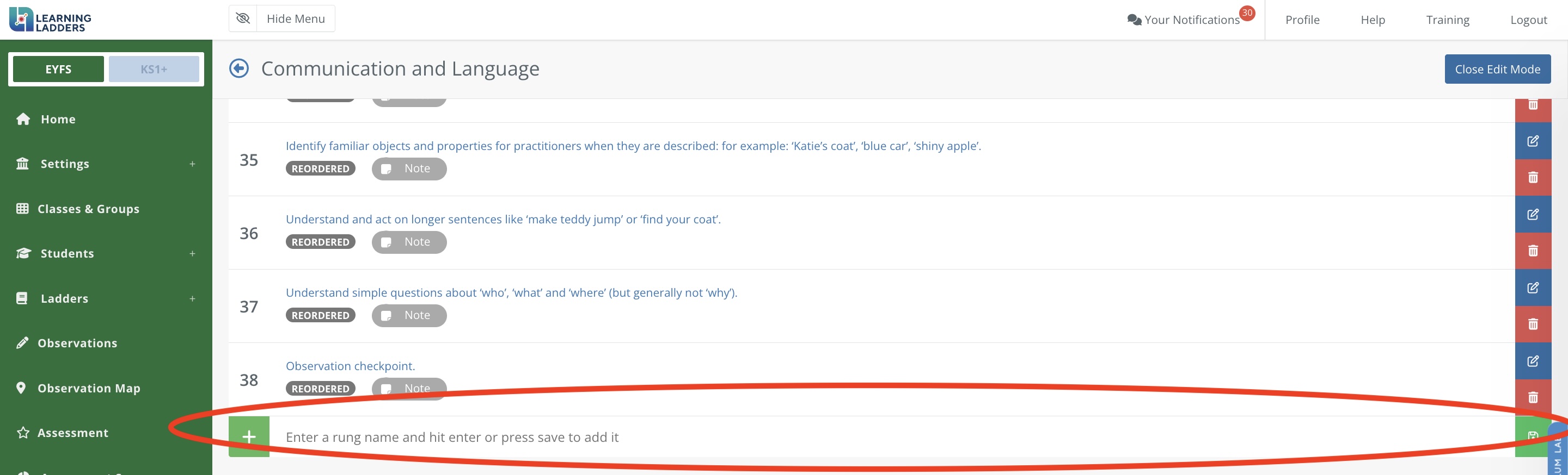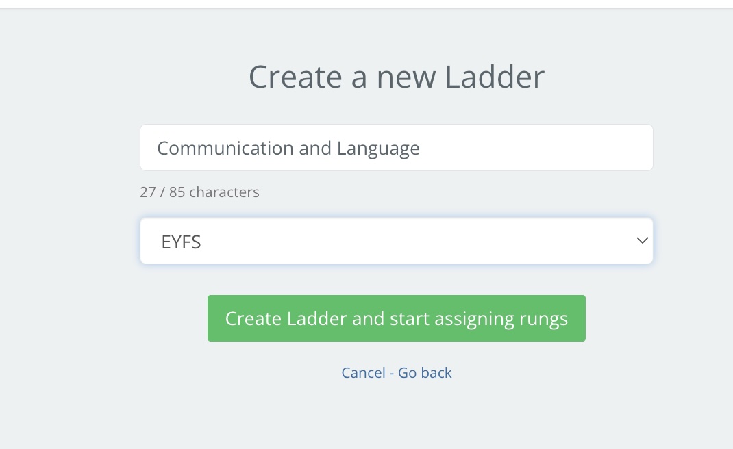 Click 'Create rungs' and enter the rungs in the relevant year groups, clicking 'Save rung' as you go