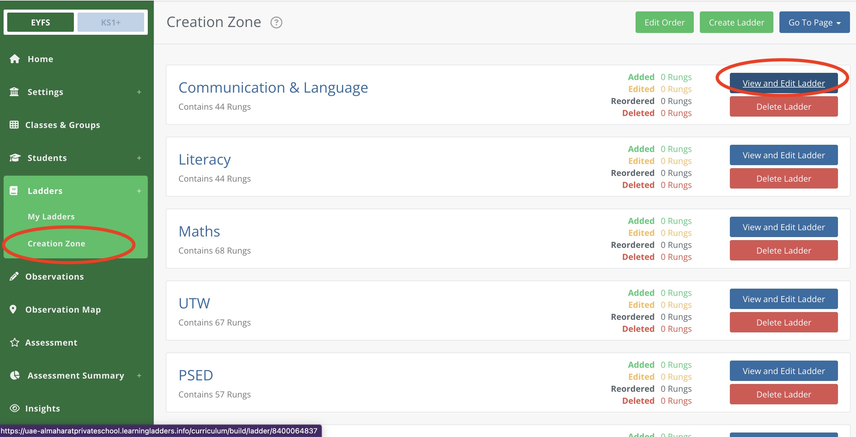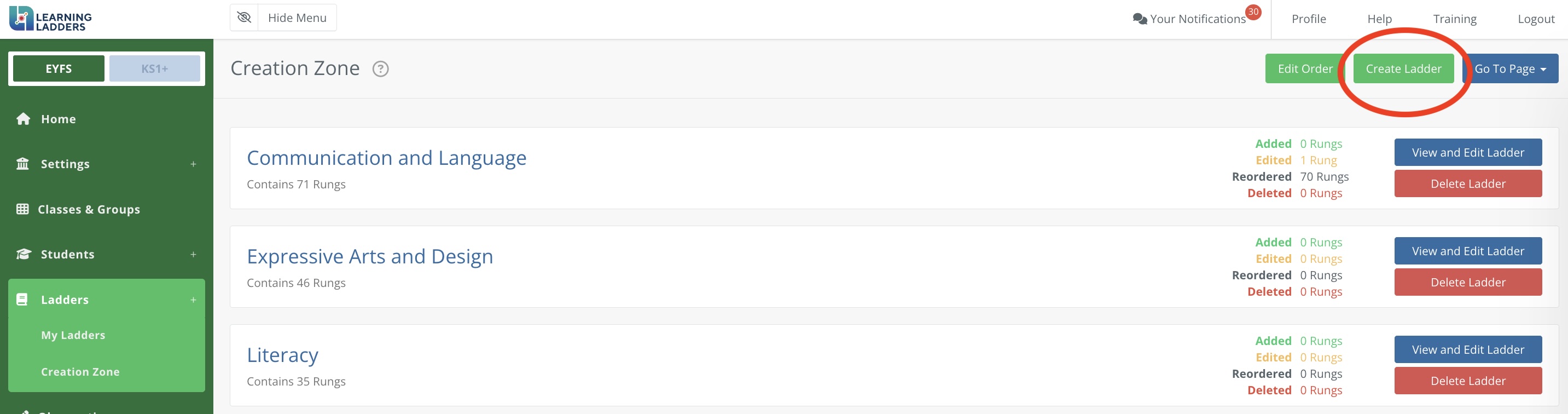 Use the back arrow to return to the Creation Zone, then 'Review and Publish Changes' when you are happy with your Ladders