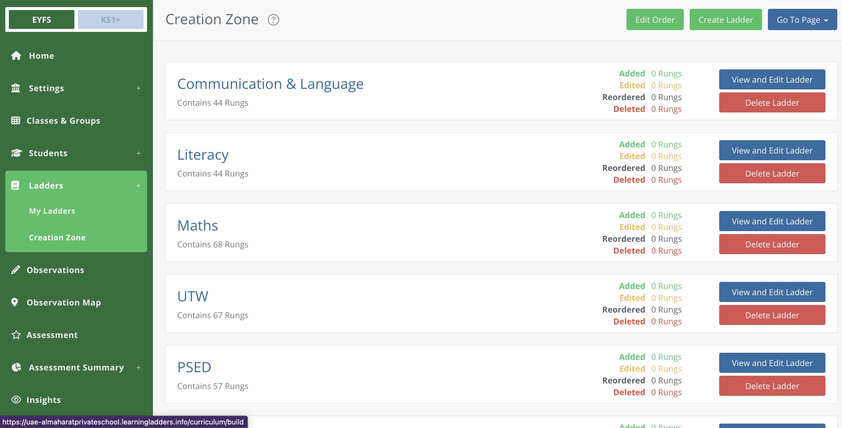 In the EYFS curriculum, there is only one subject, 'EYFS'. All new Ladders must have the subject 'EYFS'.