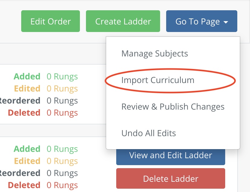 3. In the top right corner will be a green button which states ‘Import Curriculum’. Click this.