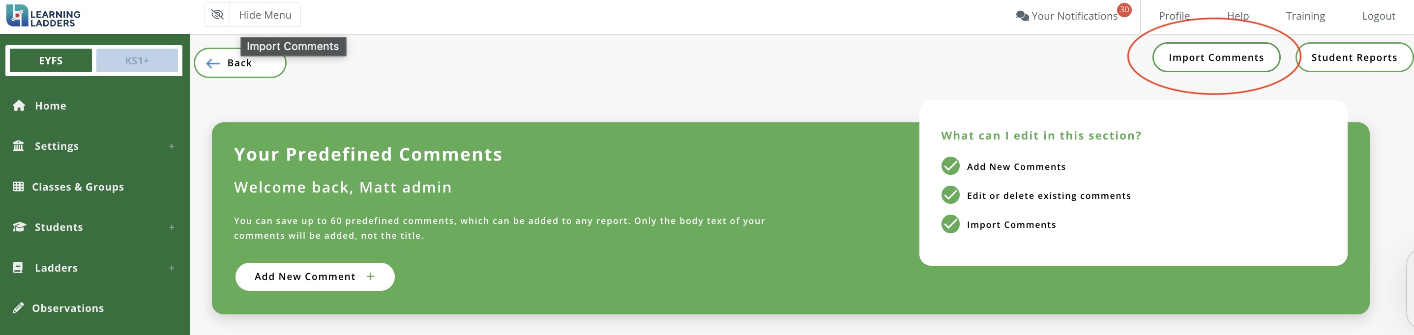 Predefined comments allow teachers to save up to 30 different comments to utilise in the 'comment' section of student reports; this includes ladder comments, teacher comments or senior leadership comments.