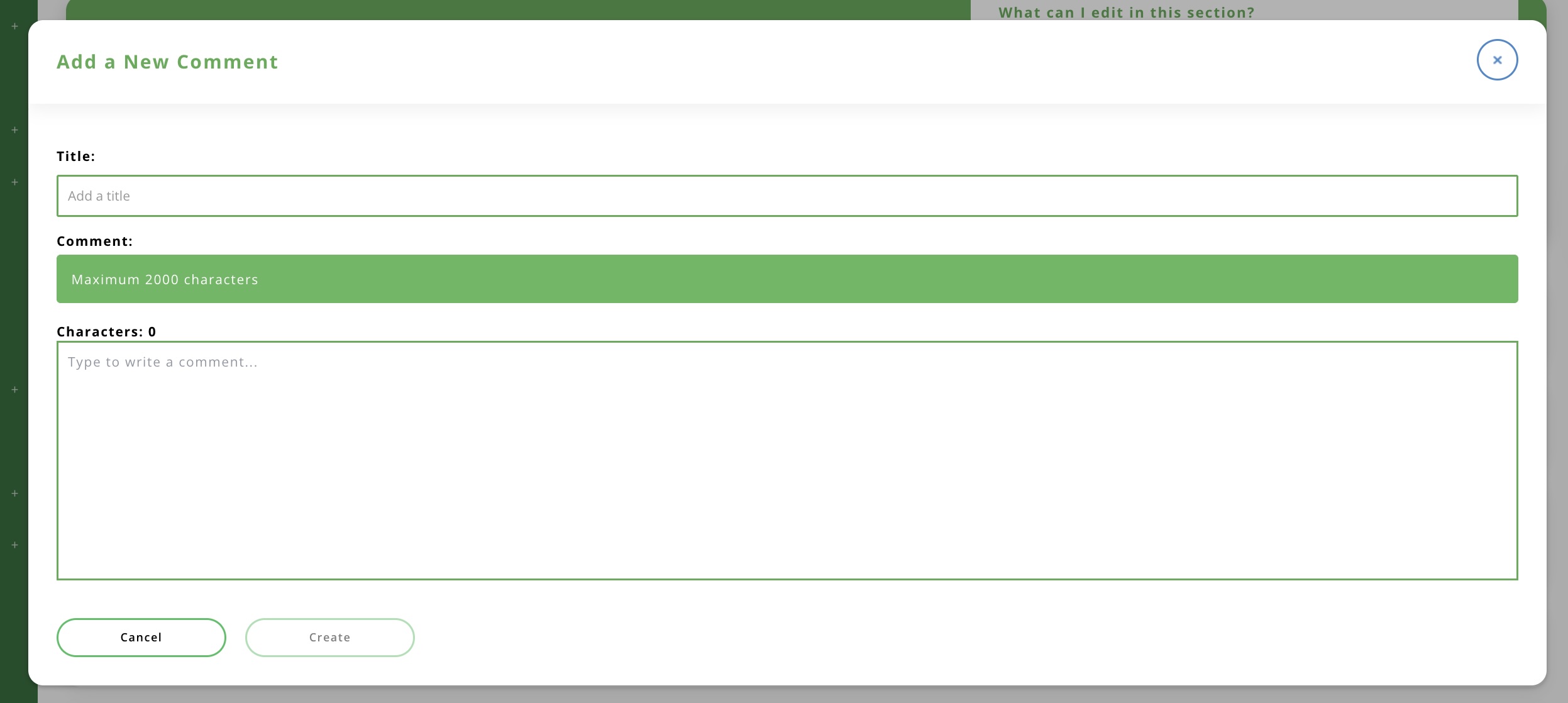Click on 'create' and you will see your new comment added to the list.
