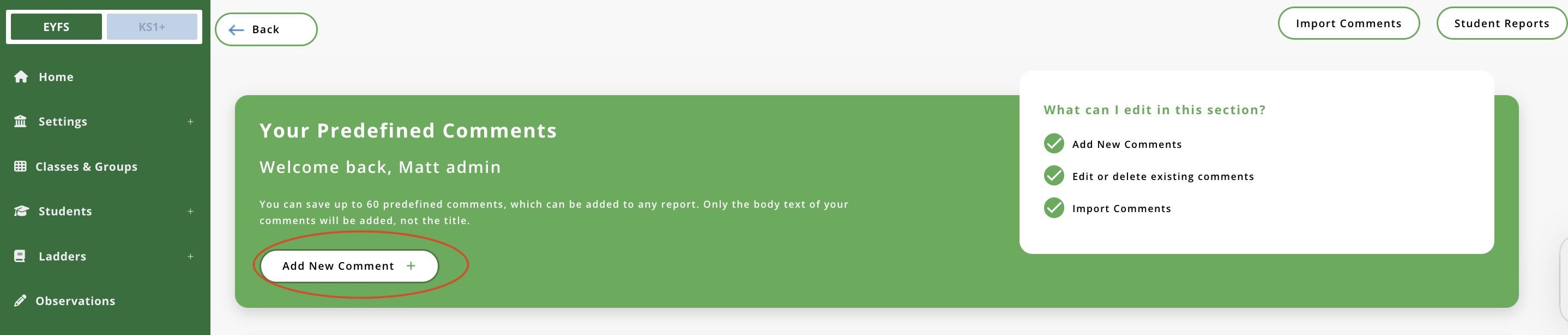 EYFS Student Reports: Admin User Guide