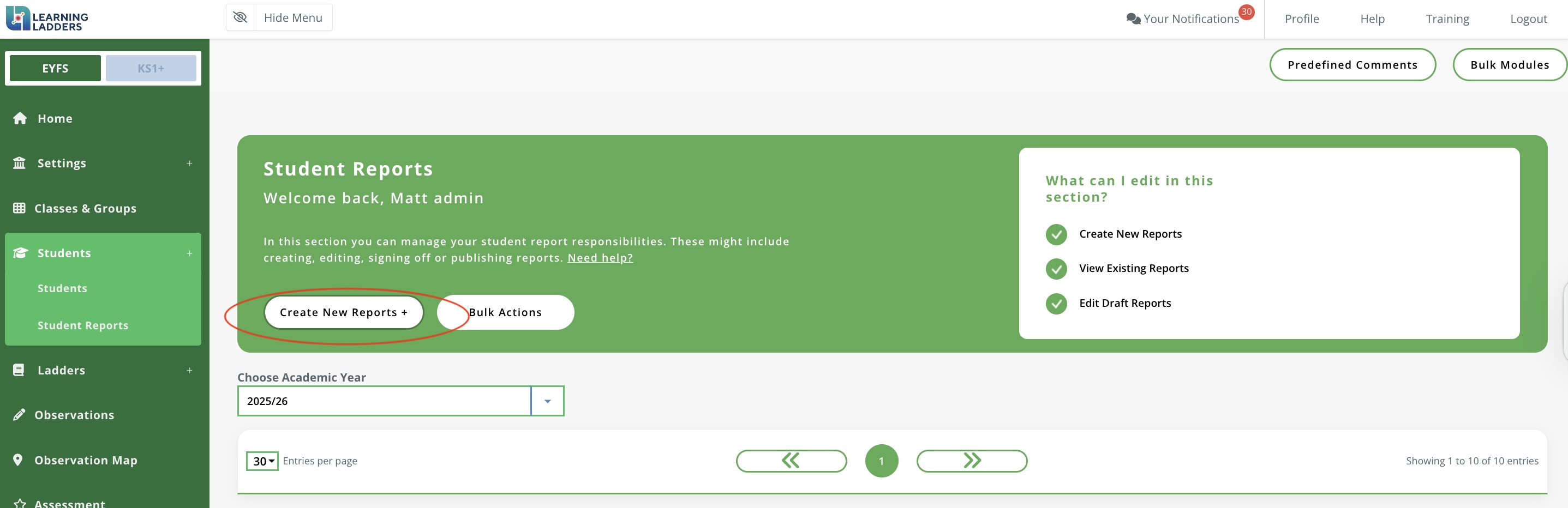 EYFS Student Reports: Create your Templates (Admin User)