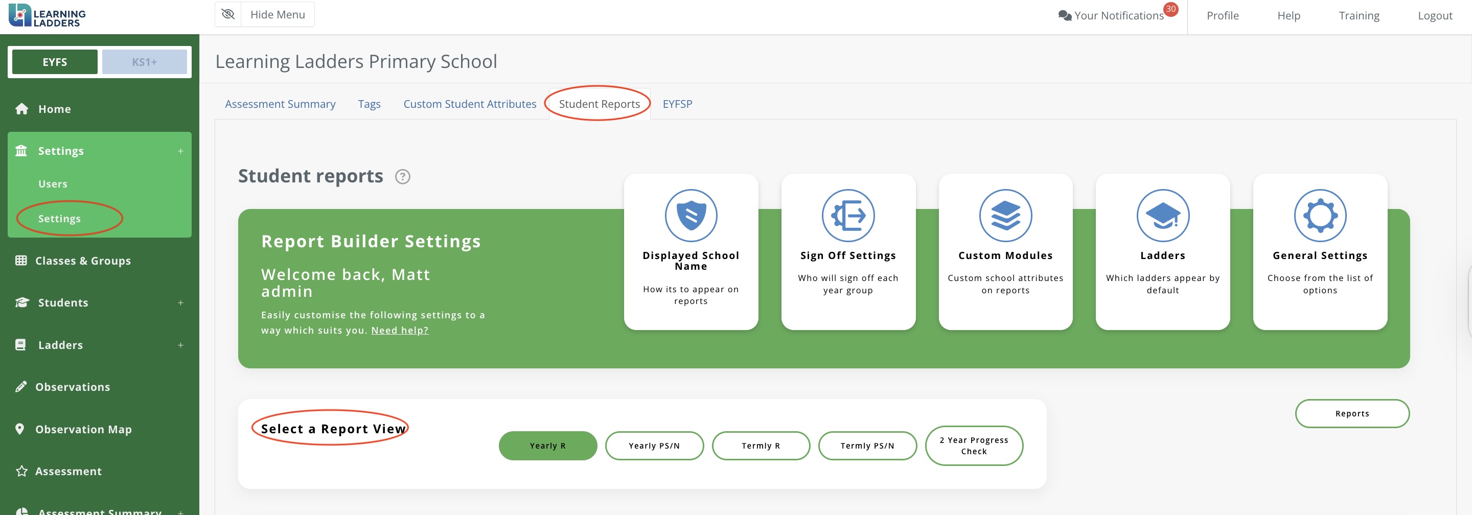 If you are a Learning Ladders admin user, follow these steps to set up your school's termly and yearly templates for EYFS.