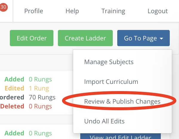 Please note: you will need to click on 'Review and Publish Changes' in the Creation Zone before the changes to ladders/rungs will be visible for teacher users.