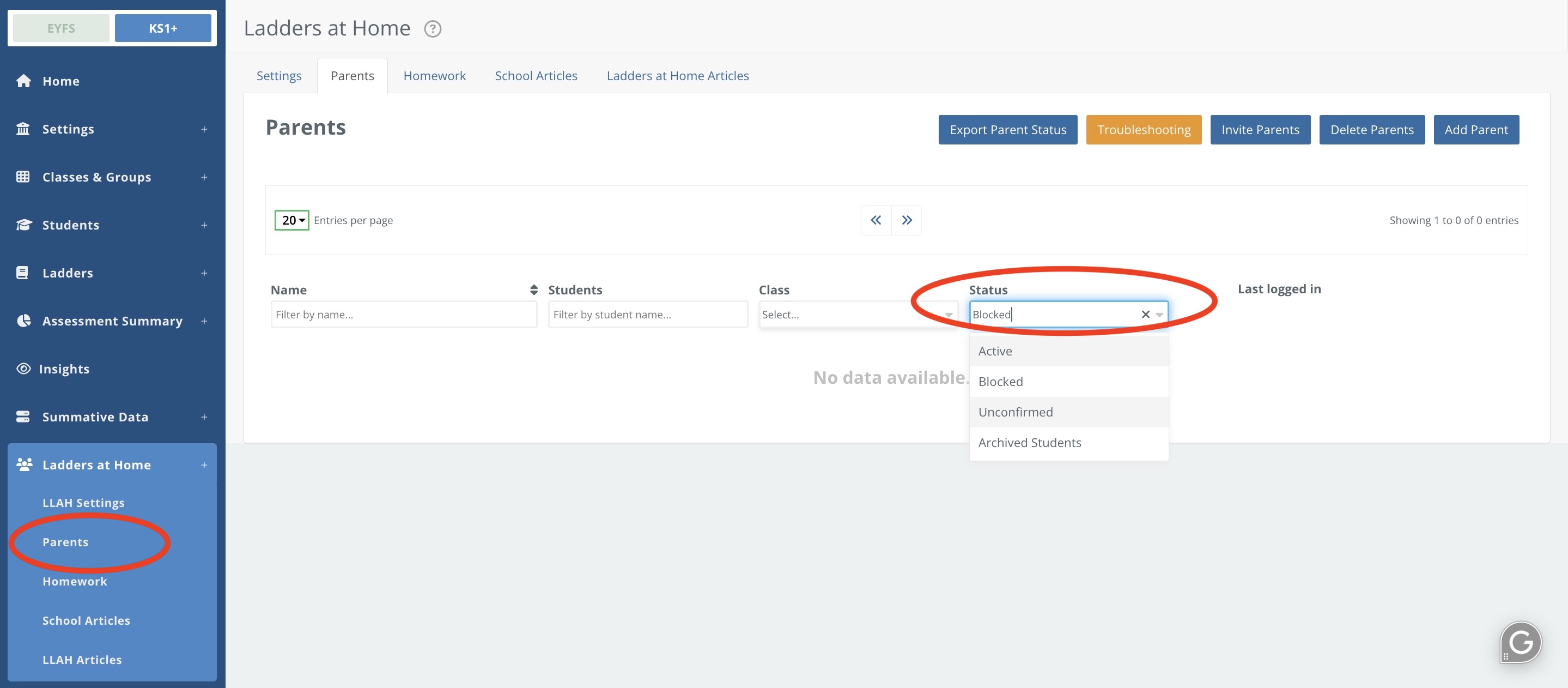 1. If your school already has an MIS integration set up then this will sync your parent details from your MIS. You can view the Parents in Ladders at Home> Parents.
